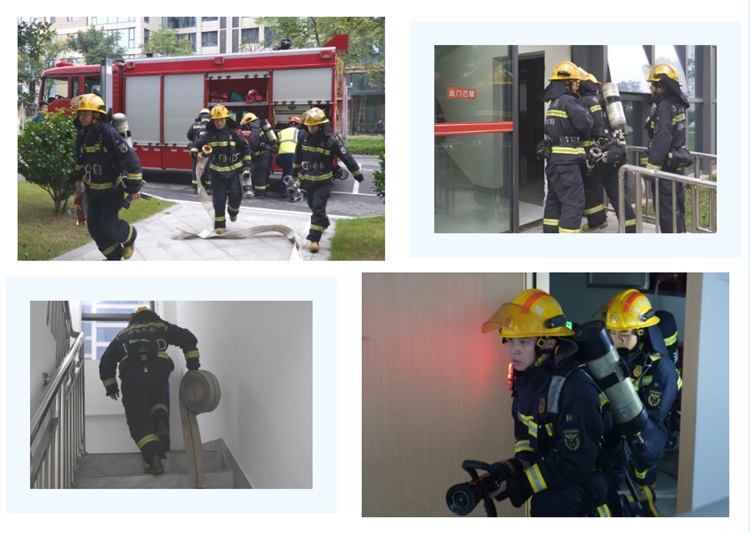 隨后進入實戰(zhàn)演練環(huán)節(jié),模擬辦公樓突發(fā)火情,消防控制室在接報后立即啟動應急預案,消防站隊員迅速抵達現(xiàn)場展開撲救,同時引導假設受困人員沿疏散通道撤離。整個演練過程銜接緊密、響應迅速,有效檢驗了企業(yè)應急預案的可行性與現(xiàn)場救援的協(xié)同處置能力。