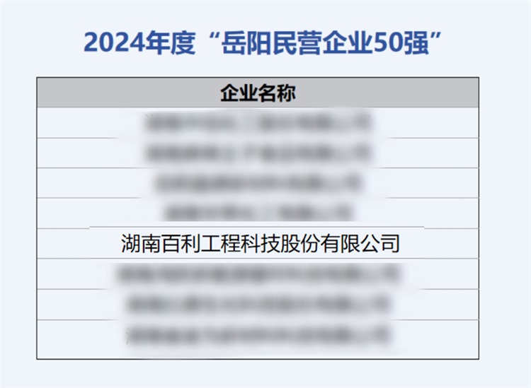 近日,岳陽市工商業(yè)聯(lián)合會(huì)公示2024年度“岳陽民營企業(yè)50強(qiáng)”名單。百利科技憑借其深厚的產(chǎn)業(yè)積淀與綜合實(shí)力榮譽(yù)上榜。